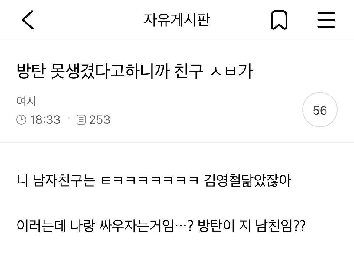 작성자소소의세상 작성시간 26.03.24 그니까 왜 못생긴 남자 만나면서 긁어