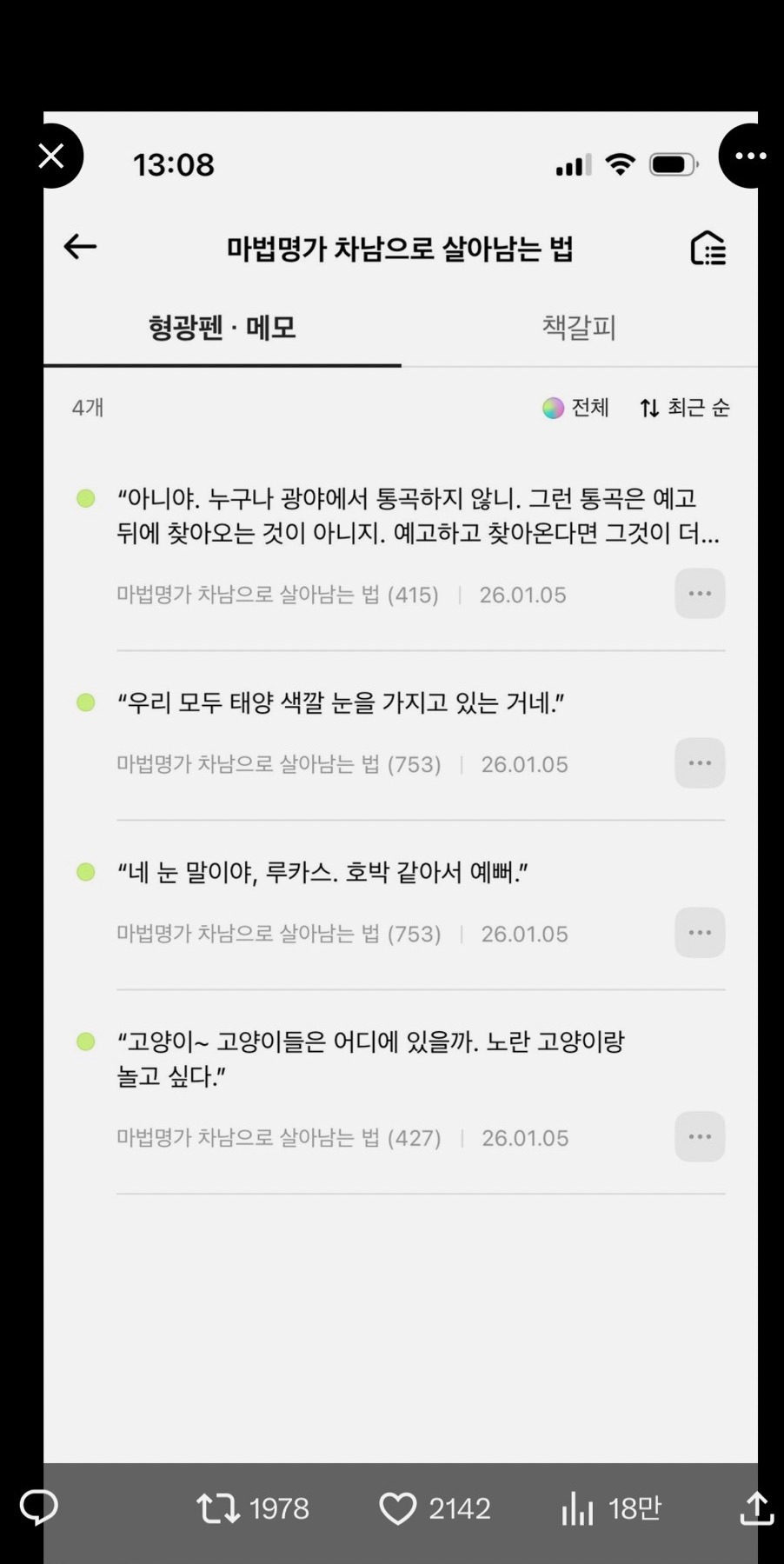 리디는 당장 카카페를 본받아라 작성자우승민|작성시간26.01.05|조회수55 목록 댓글 10 글자크기 작게가 글자크기 크게가 형광펜이 화수벌로 보여지다니 ㄷㄷㄷ 다음검색 현재 게시글 추가 기능 열기 북마크 공유하기 신고 센터로 신고 댓글 댓글 10 댓글쓰기 답글쓰기 댓글 리스트 작성자얼룩 | 작성시간 26.01.05 ㄷㅇ 작성자긴작 | 작성시간 26.01.05 너무반가운글자가보이네 작성자둘리 | 작성시간 26.01.06 헐 작성자윤별 | 작성시간 26.01.06 미친 개쩐다 이거 생기면 진짜 연재 볼 수 있어 작성자선우현 | 작성시간 26.01.06 와쩐다 댓글 전체보기