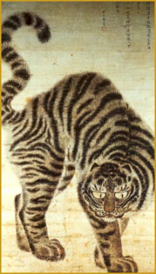 최근에 민화가 재평가되면서 까치와 호랑이 그림이 일반인에게 널리 알려졌다. 그런탓으로 많은 사람들은 호랑이 그림이 민화의 주류 인양 오해하기 쉽다. 하지만 호랑이 그림은 도화원의 화가에 의해 조선 초부터 그려진 영모화의 한 소재였다. 또한 악귀를 물리치는 그림으로 용과 함께 매년 새해 벽두에 그린 그림으로 유명하다.
