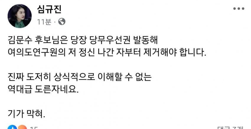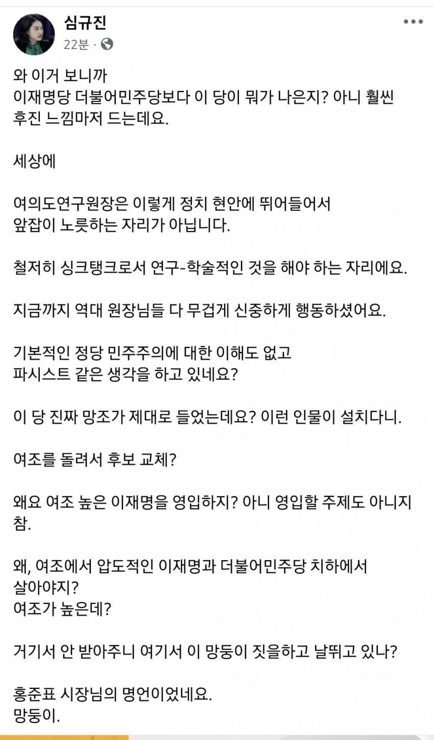 ▲▼ 여의도연구원장 윤희숙을 저격하는 심규진