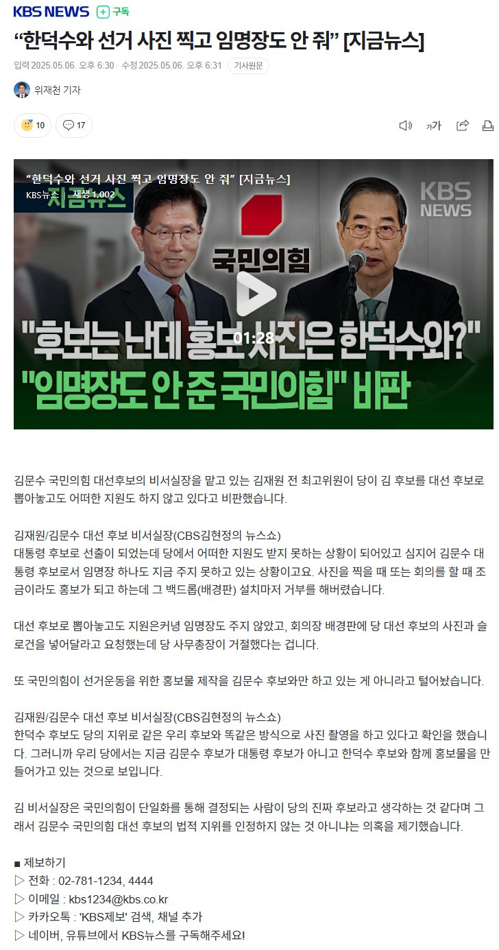 ‘김문수 측근’ 차명진 “권영세·권성동, 단일화 협박…당내 쿠테타” : https://cafe.daum.net/unitalk/9bYO/15204