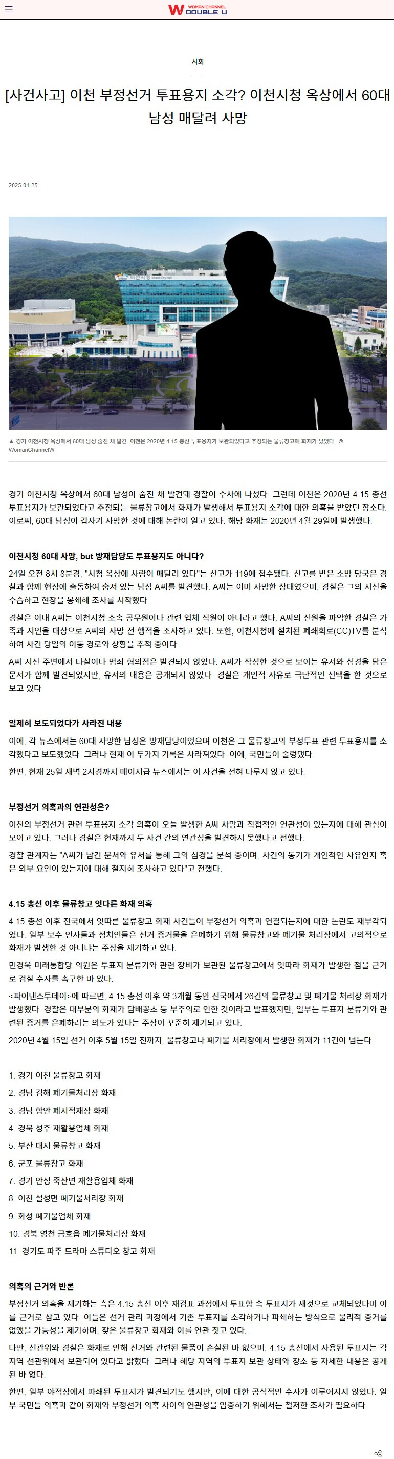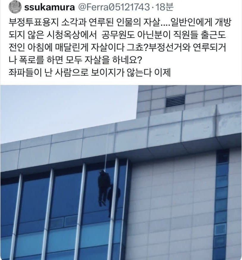 but 방재담당도 투표용지도 아니다?지 소각? 이천시청 옥상에서 60대 남성 매달려 사망