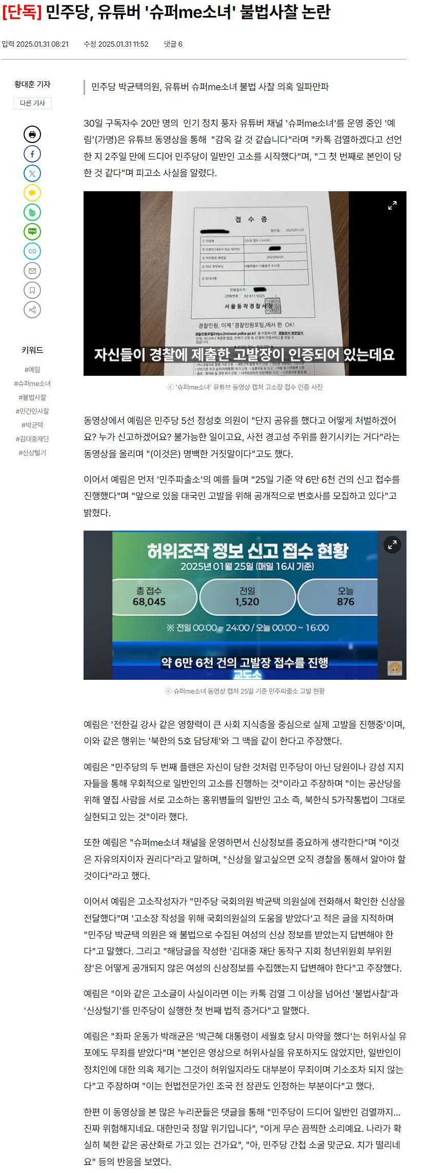 [단독] 민주당, 유튜버 '슈퍼me소녀' 불법사찰 논란