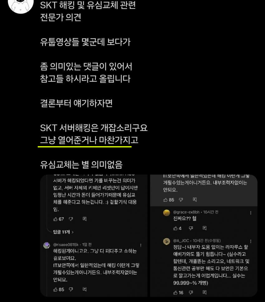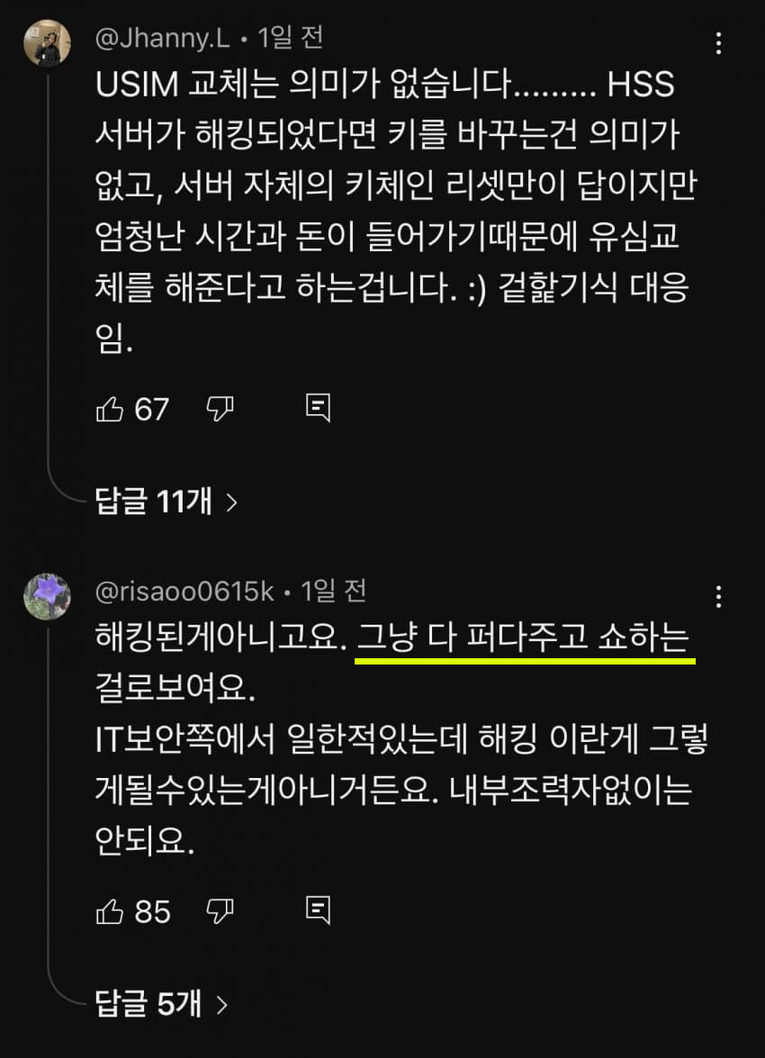 SKT 해킹 사건, 유심 교체 의미 없다는 주장 있음 : https://cafe.daum.net/unitalk/9bYR/11038