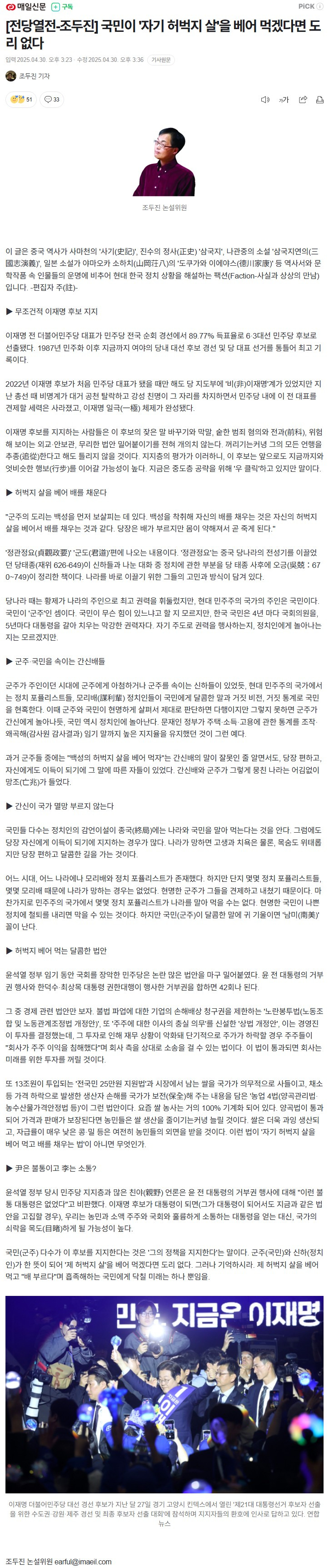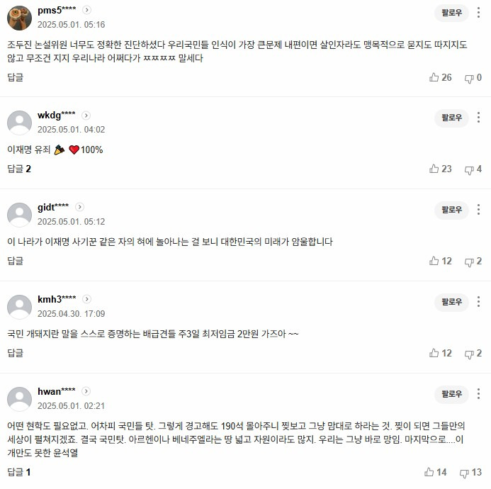 ▶ 무조건적 이재명 후보 지지