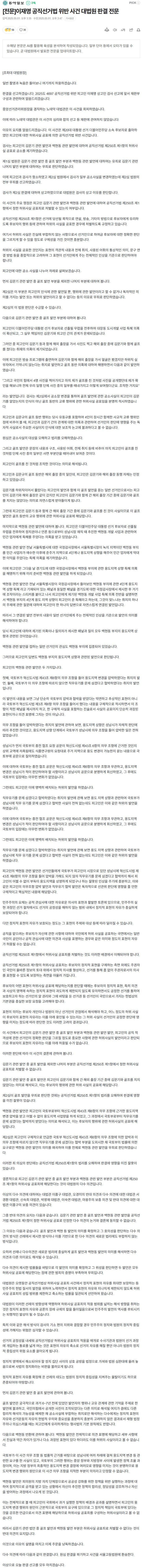 [전문]이재명 공직선거법 위반 사건 대법원 판결 전문