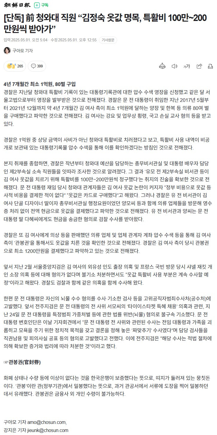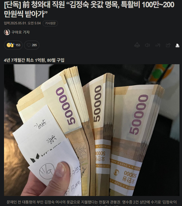"김정숙 옷값 '관봉권'으로 치렀다"는 증언이 나왔음 : https://cafe.daum.net/unitalk/9bYR/7470