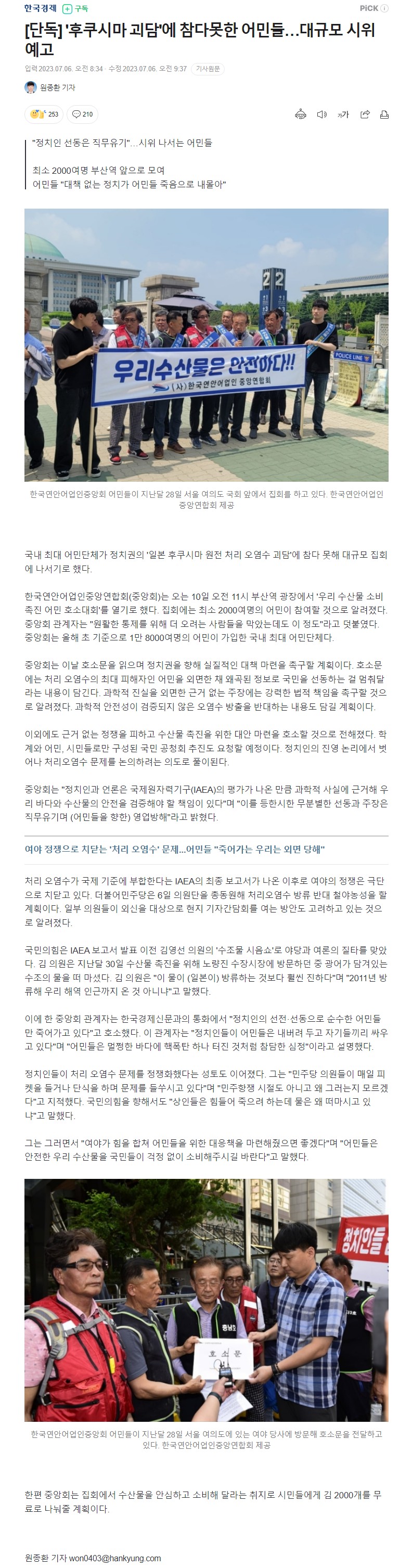 어민들 "대책 없는 정치가 어민들 죽음으로 내몰아"