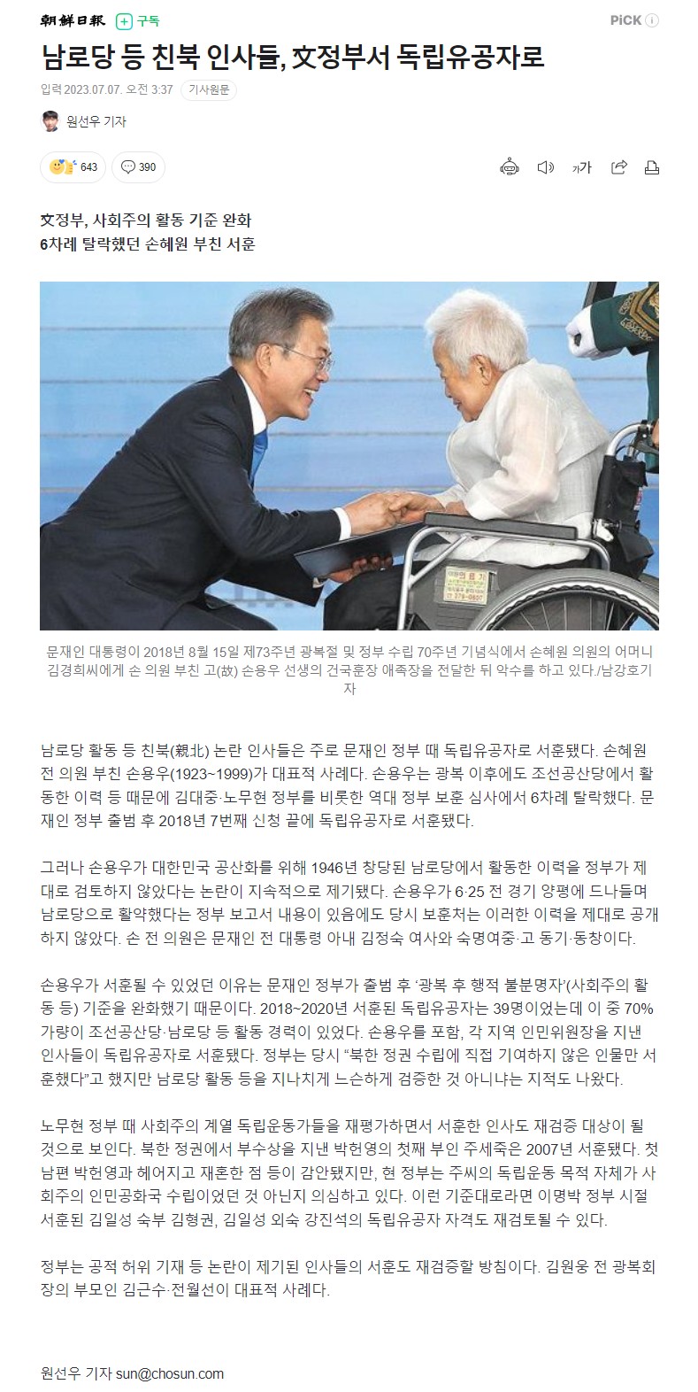 남로당 등 친북 인사들, 文정부서 독립유공자로