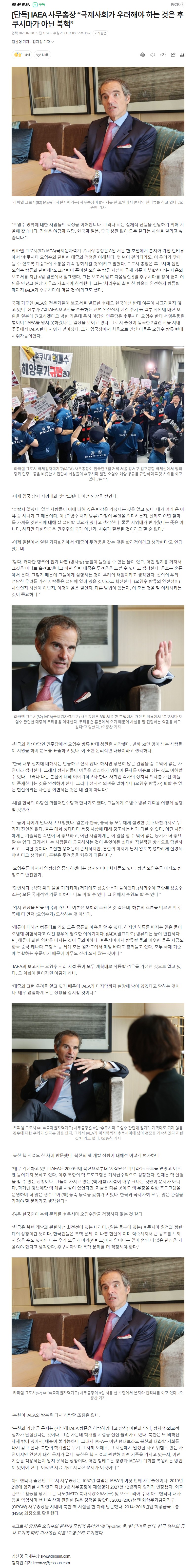 [단독] IAEA 사무총장 “국제사회가 우려해야 하는 것은 후쿠시마가 아닌 북핵”