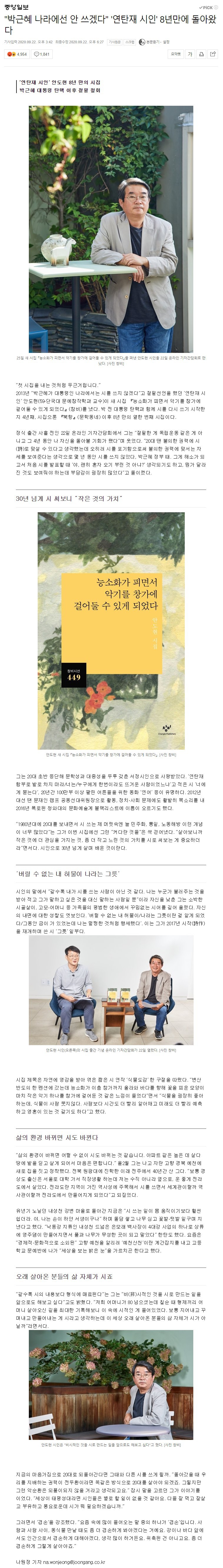 "박근혜 나라에선 안 쓰겠다" '연탄재 시인' 8년만에 돌아왔다