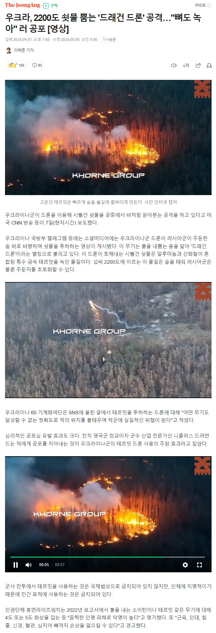 우크라, 2200도 쇳물 뿜는 '드래건 드론' 공격…"뼈도 녹아" 러 공포 [영상]