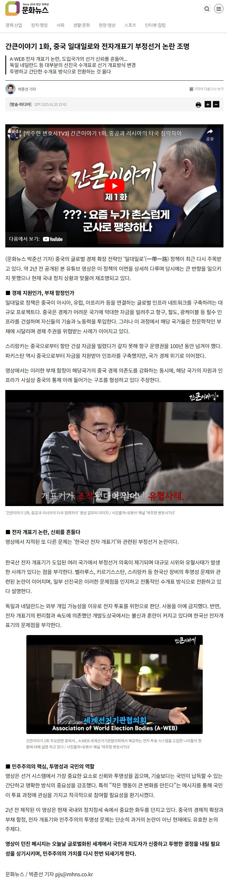 간큰이야기 1화, 중국 일대일로와 전자개표기 부정선거 논란 조명