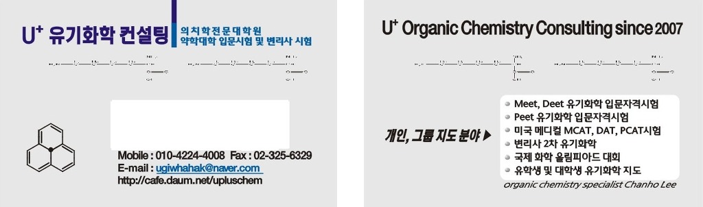 아르바이트식으로하는 과외가 아닙니다. 유기화학을 전문으로 가르치는