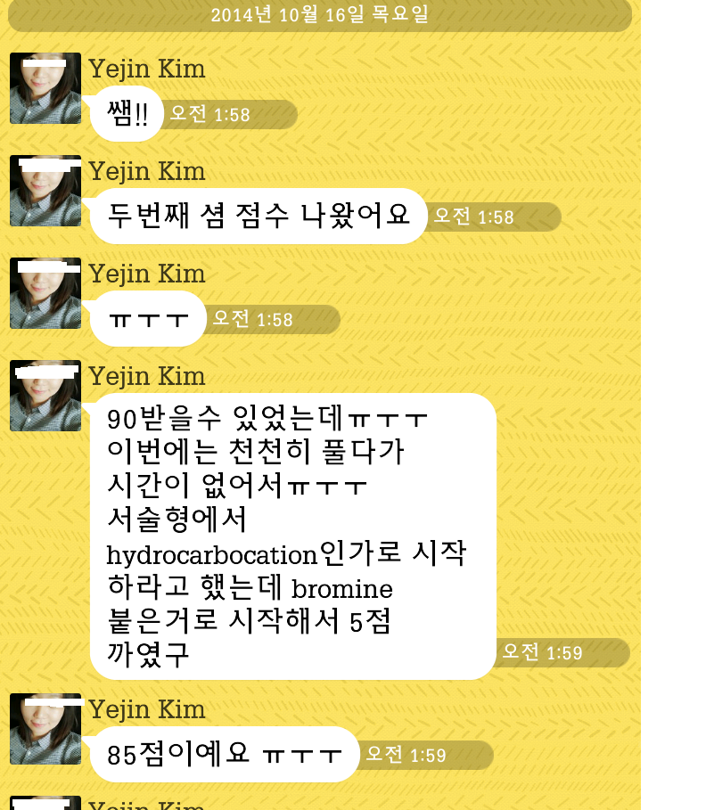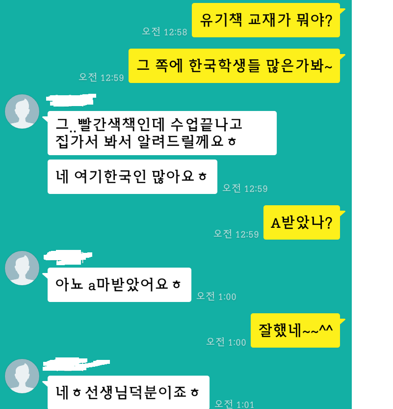 (한국인 선배들 유기화학 이수못해서 학교에 없어 졌는데 개인과외 받아서 극복)