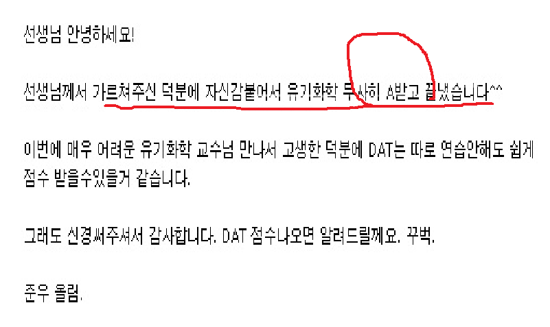 Orgo 는 강사의 실적이 말합니다. 맞춤식 과외와 제자들의 감사편지들을 보세요.