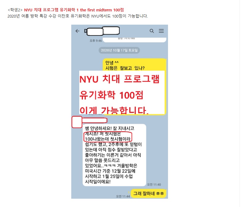 무엇보다도 유기화학을 선생님 덕분에 잘 준비하게 해주어서 감사하다고 하네요. ^^