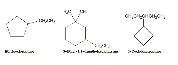 1. 가지를 치지 않은 알칸 이름 앞에 접두어 cyclo를 붙여 명명한다.