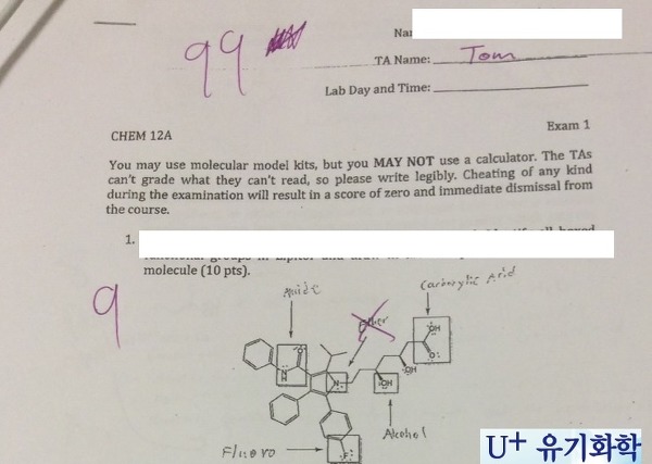 유기화학 작년 강의중에 그렇게 강조한 functional group 차이인데.. ㅜㅜ 1점 나갔네요.