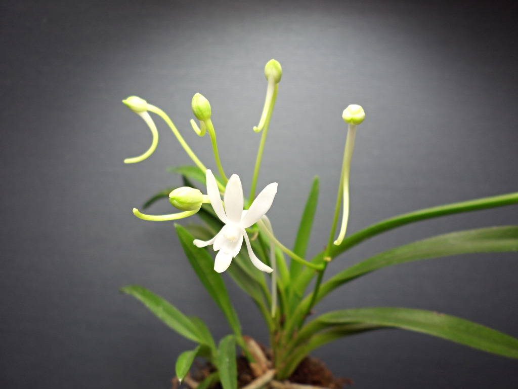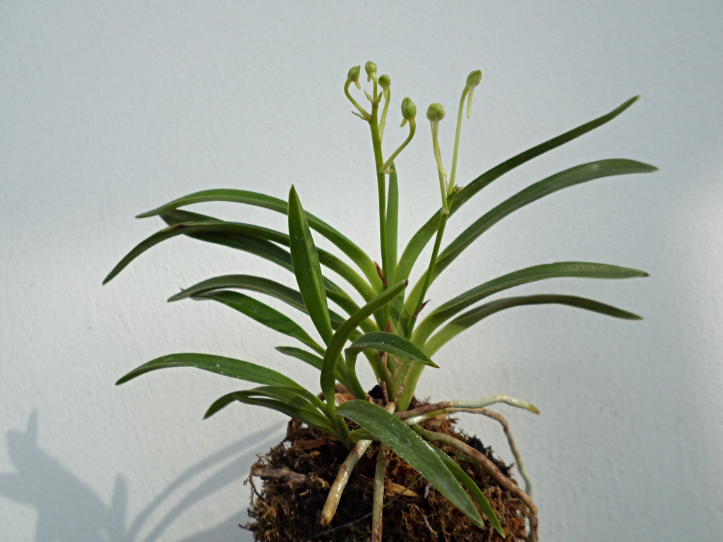 꽃대관리 ~ 잎 겨드랑이에서 꽃대가 올라오기 시작하면 풍란의 전채 모양, 자태, 균형을 잘 고려하여 앞과 뒤를 정하여