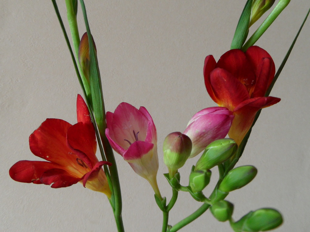 프리지어는 여름 고온기를 30일 이상 보내야 꽃눈이 생겨 꽃이 잘 핀다고 합니다.