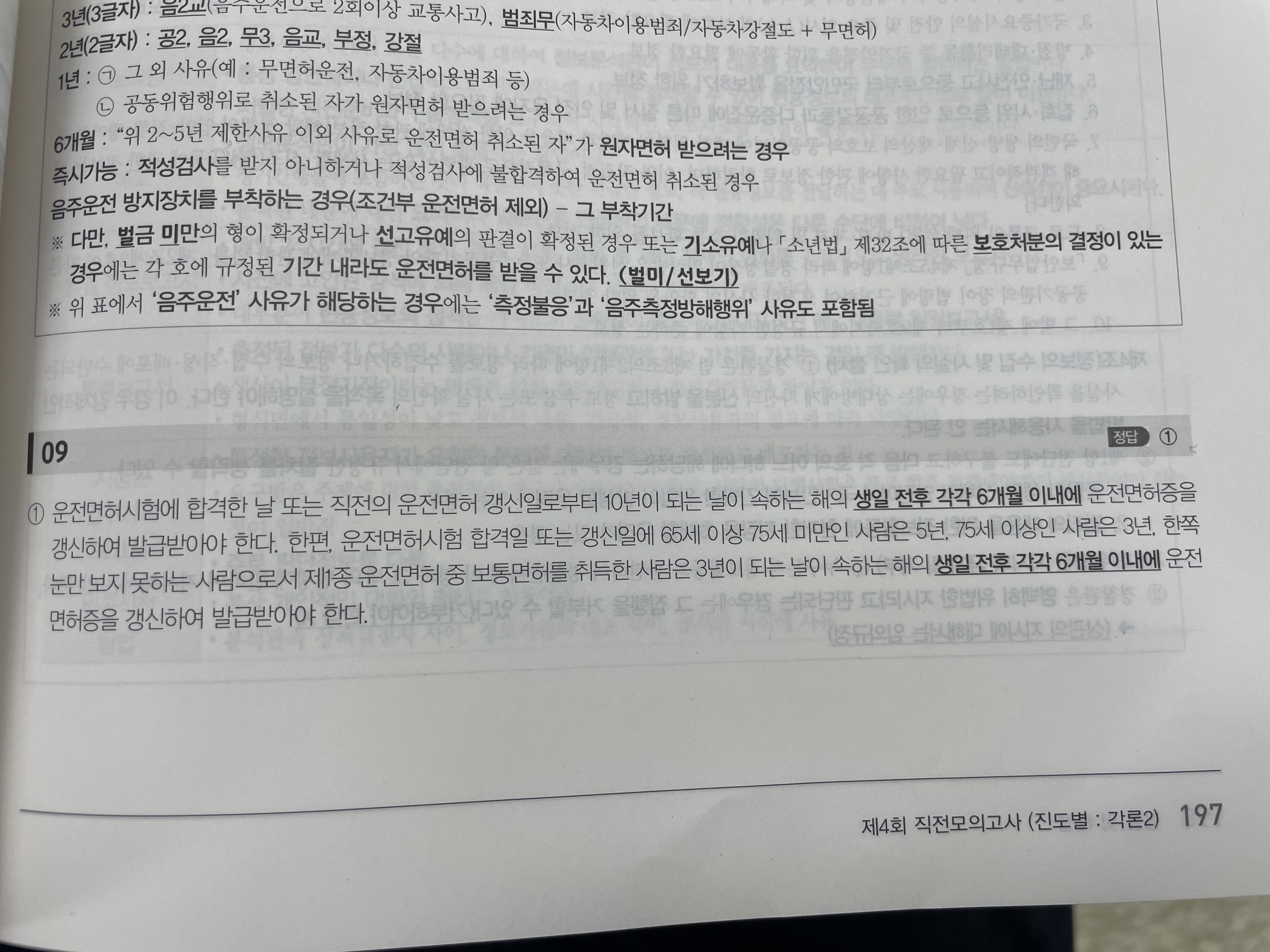 질문 : 제가 알기로는 운전먼혀 갱신일로부터 10년이 되는날이 속하는 해의 1월 1일부터 12월 31일까지 갱신하여 발급받아야하는걸로 알고 있는데, 해설지에서는 생일 전후 각각 6개월 이내에 받아야한다고 되어있어서 해석의 차이인지 개정된거지 궁금합니다..!