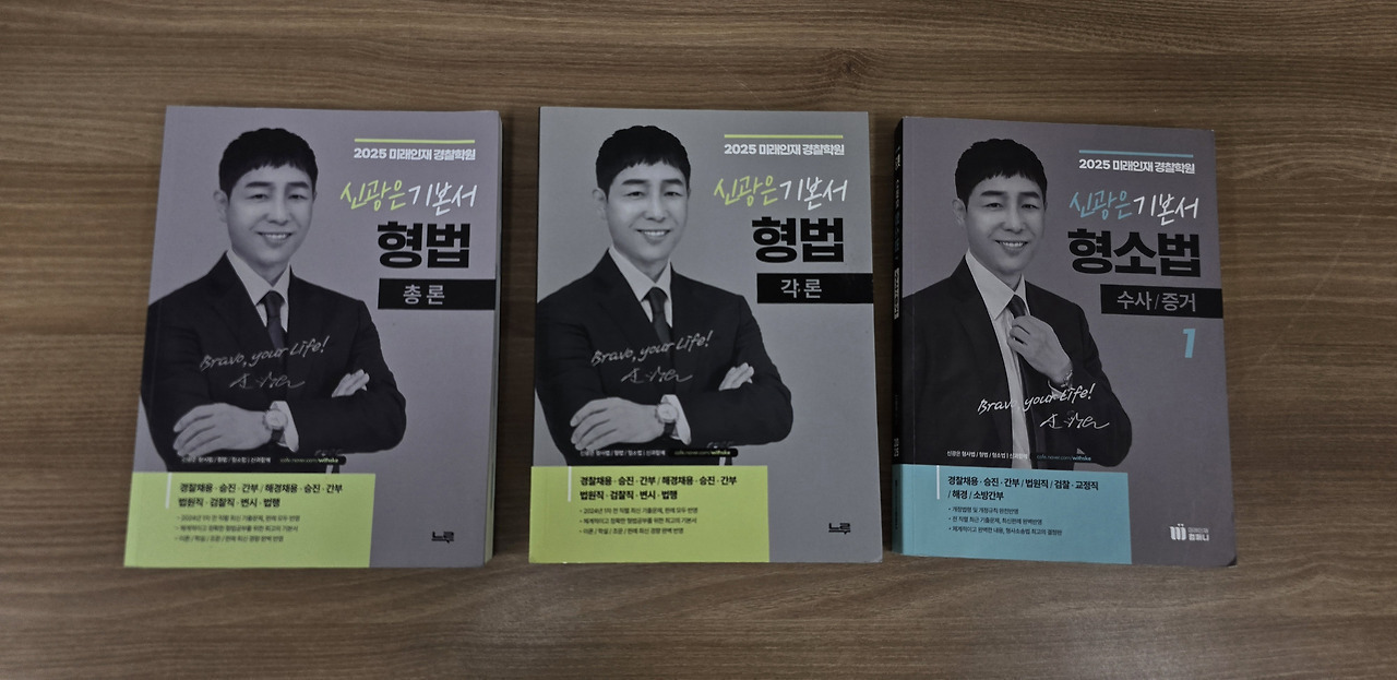 신광은 형법 총론 기본서 및 수사증거 기본서 우체국 택포 일괄 2만 원 판매합니다. 편의점 반값 원하시면 1만 8천 원입니다.
