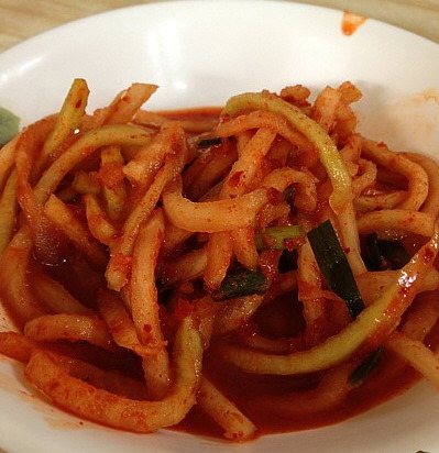 이 집의 특징중에 하나가 밑반찬인데 무채가 나오는데 이것이 묘하게