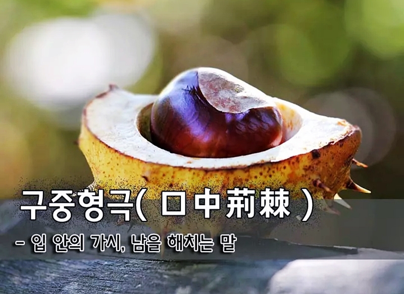 구중형극(口中荊棘) - 입 안의 가시, 남을 해치는 말 [입 구(口/0) 가운데 중(丨/3) 가시 형(艹/6) 가시 극(木/8)] 나무의 가시를 말하는 荊棘(형극)은 가시밭길같이 온갖 고생을 비유적으로 이르기도 한다. 또한 가시나무의 얽히고설킨 모습에서 분규를 나타낸다. 입안(口中)의 가시(荊棘)라고 하면 가시나무의 찌르려는 속성에서 원한, 또는 해치려는 음험한 말을 가리키지만 대뜸 떠올리기는 독서와 연관 짓는다. 바로 安重根(안중근) 의사의 유묵으로 널리 알려진 口中生荊棘(구중생형극) 때문이다. 하루라도 책을 읽지 않으면(一日不讀書/ 일일부독서) 입 안에 가시가 돋는다는 뜻으로 죽음을 눈앞에 두고도 옥중에서 독서를 멈추지 않았던 의사의 표현이니 숙연하다. 안 의사 유묵 이전부터 많이 사용하게 된 것은 ‘推句(추구)’에서일 듯하다. 千字文(천자문), 四字小學(사자소학)과 함께 학동들이 가장 먼저 익히는 추구는 五言(오언)으로 된 좋은 대구 모음이다. 입안의 가시란 말은 ‘십년동안 등잔 밑에서 공부하여 사흘간 말 타고 영화 누린다(十年燈下苦 三日馬頭榮/ 십년등하고 삼일마두영)’는 구절 뒤에 따른다. 또 조선 말기 선비들의 필독서였던 ‘簡牘會粹(간독회수)’에 ‘요사이 책을 읽은 지 오래되어 입안에 가시가 자라고 가슴 속이 띠풀로 꽉 막혔다(近日 不讀書久矣 口中荊棘 胸裏茅塞/ 근일 부독서구의 구중형극 흉리모색)’란 표현이 나온다고 한다. 독서와는 달리 남을 해치는 음흉한 말을 뜻하는 유래는 더 오래 됐다. 宋(송)나라 葉廷珪(섭정규, 葉은 잎 엽, 땅이름 섭)란 사람이 엮은 ‘海錄碎事(해록쇄사)’에는 ‘가시는 입안에서 돋고 자황은 혀끝에서 어긋난다(荊棘生於口中 雌黃謬於舌杪/ 형극생어구중 자황류어설초)’는 구절이 있다. 謬는 그르칠 류, 杪는 나무끝 초. 자황은 유황과 비소의 화합물 결정체로 오늘날의 지우개처럼 글자를 잘못 썼을 때 지우고 다시 쓰는 약품이다. 여기서 함부로 말하거나 남의 말이나 글을 첨삭하여 시비를 가린다는 口中雌黃(구중자황), 信口雌黃(신구자황)이란 말도 나왔다. 가시 돋친 말은 남을 해칠 뿐만 아니라 자신의 인격을 깎아내리니 조심하라는 교훈이다. / 제공 : 안병화(전언론인, 한국어문한자회) |