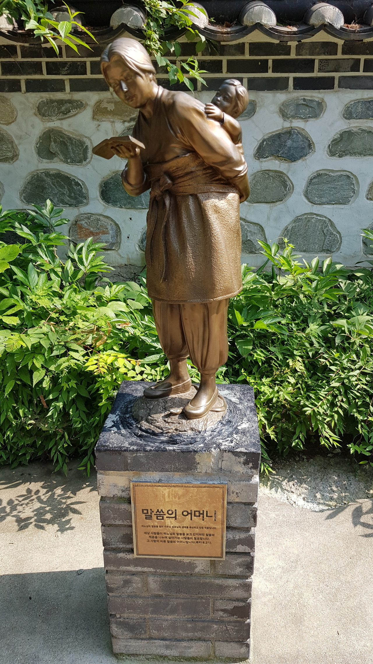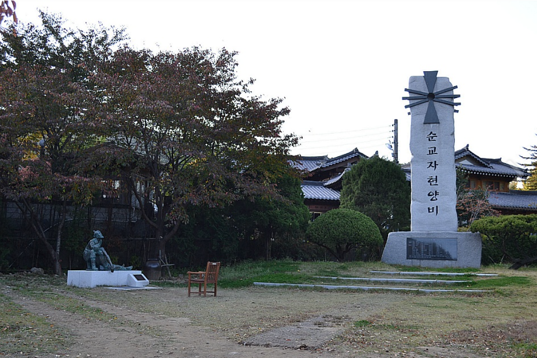 현양탑은 낮은 기와 돌담이 둘러쳐진 잔디밭에 있는 탓에 꼭 작은 성지처럼 느껴진다.