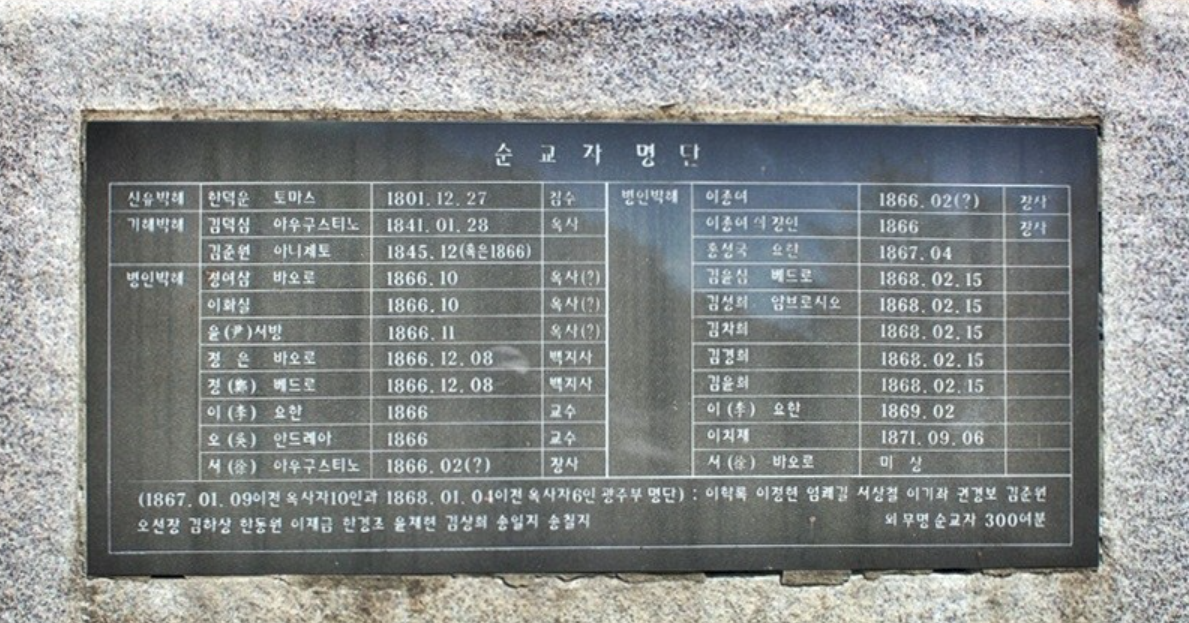 그래서인지 자연스레 현양탑 비석에 새겨진 순교자들의 이름을