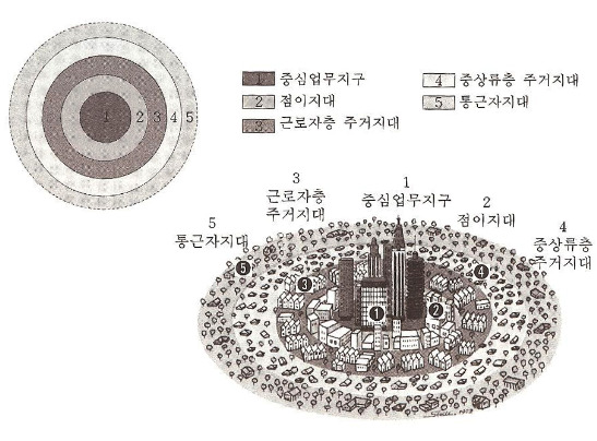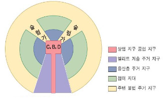 CBD, 전이지대, 근로자, 중산층, 통근자 지대 | ||