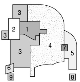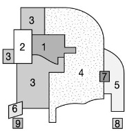 제Ⅰ지대의 업무시설 및 경공업 등이 비집고 들어와 주택지대로서의 거주환경을 악화시킴으로써 형성되는 지대 내측에는 공장지구가, 외측에는 악화일로에 있는 주택지구가 위치 주거지역은 대체로 저급주택과 빈민가의 발생으로 슬럼(slum)이 형성 | ||