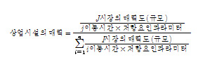 소비자가 주어진 상업시설을 이용할 확률은 상업시설의 크기에 비례하고 이동하는데 걸리는 시간에 반비례