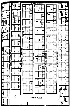 - BC14c 노무자를 위한 일단의 주택지, 사방 70m의 소규모 블록, 바둑판의 소로에 주택 건립