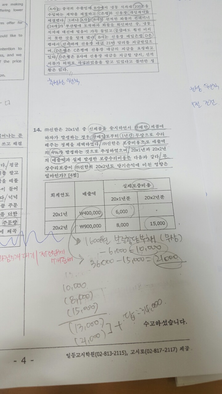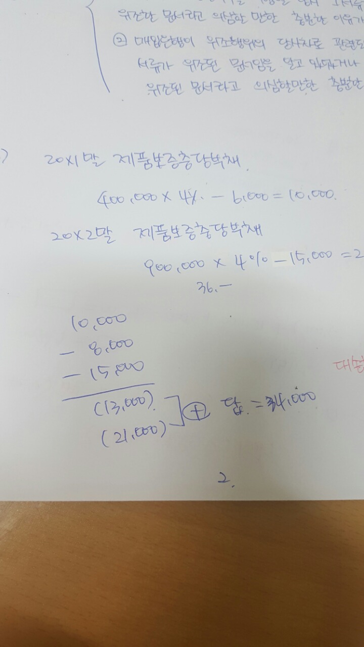 20x1년 충당부채 10000 20x2년 21000에서