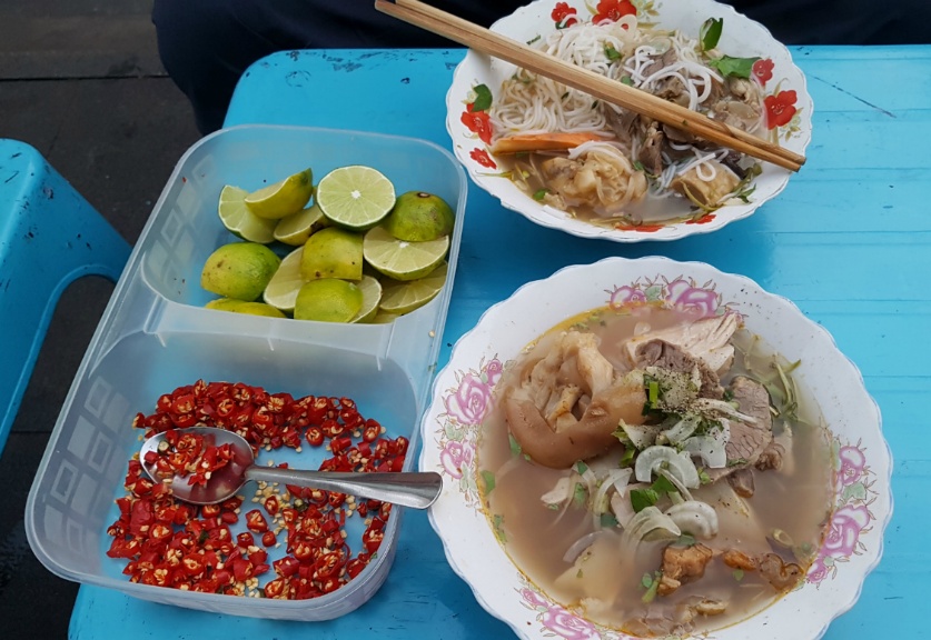 < 베트남 남부식 쌀국수. 돼지 족발과 돼지 간도 들어가 있다. 면이 넓은 북부식과는 달리 면이 가늘다.>