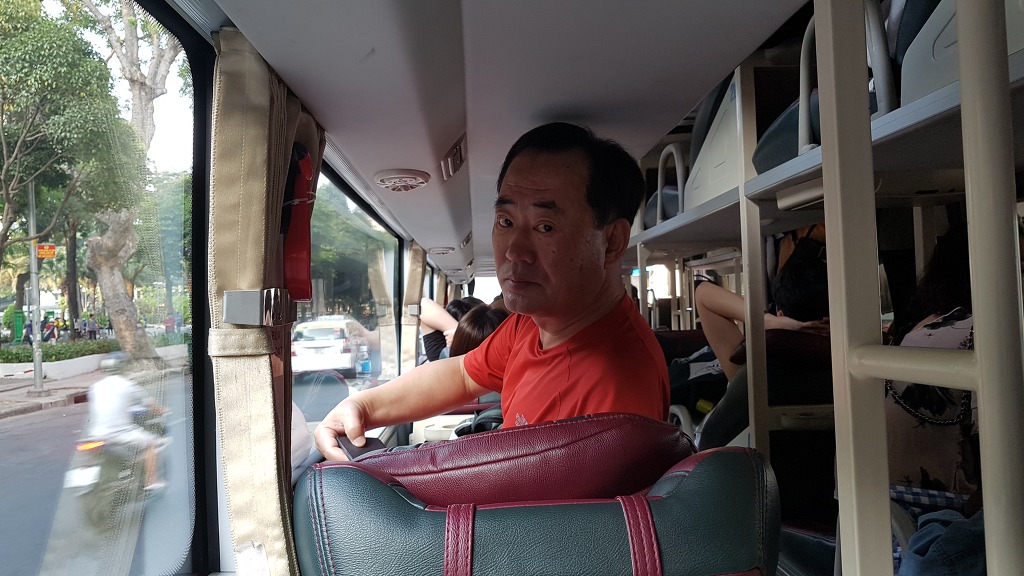 신 투어리스트의 문이 열리고 우린 가지고 있던 바우처를 승차권으로 교환 후 운전기사의 안내에 따라 대기하고 있던 공원 옆 슬리핑 버스에 탔다. 출발시간은 7시 20분이었다. 도중에 휴게소에 들렀는데 북 베트남 여행 때 경험을 살려 두 사람 다 신발은 두고 나갔더니 엄마! 여긴 슬리퍼가 없다. 그래서 다른 사람이 다 나가길 기다렸다가 다시 신발을 가져와 신고 화장실로 갔다. 북 베트남 때는 신발을 들고 나가서 쪽팔리더니 여기서는 신발을 두고 와 쪽이 팔리는구나. 이래서 여행이 필요하다는 걸까? 그럼 중부 지방에서는 어떻게 하지?