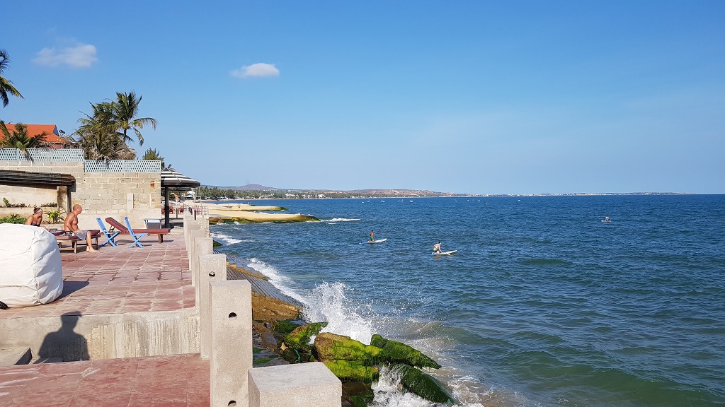 “요정의 샘” 입구에 도착하자 눈치 빠른 운전기사는 이 사람들은 이 투어에 적합한 사람들이 아니란 걸 알았는지 우리에게 그냥 호텔까지 태워 줄까라고 제의했고 당연히 우리는 “OK”라고 했다. 이런 회화에는 신경이 많이 쓰여 서양 처녀애가 다시 화려한 기술을 반복했는지 확인할 여유가 없었다. 차로 약 3분 정도 가니 호텔이 보였고 우린 아직 조식을 먹을 수 있는 시간이어서 과일과 요구르트와 아이스 홍차를 시켜 마시며 더위를 식혔다. 우리는 무이네가 전체적으로 젊은 남녀가 올 곳이란 평가에 동의했다. 방으로 들어가 샤워 후 휴식을 취하며 낮잠을 잤다.