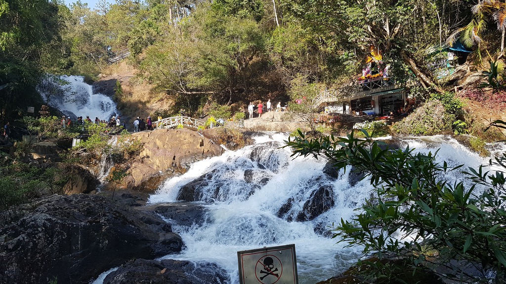 8시 15분경에 Tour pickup이 왔는데 호텔의 급과 우리의 급에 맞게 포드 승합차이다. 달랏 시내를 벗어나 조금 가니 Datanla 폭포 입구가 나온다. 차에서 내려 폭포까지는 6만 동으로 표를 끊어 썰매 비슷한 모노레일을 타고 가게 되어 있는데 안선생은 포기하고 혼자 내려가는데 당기면 나가고 밀면 멈추는 방식이었다. 한참 신나게 내려가는데 앞 커플이 사진을 찍는다고 멈추어 있다. 브레이크를 잡았지만 충돌을 면할 수 없었지만 별 탈은 없어 앞 커플이 미안하다고 사과하는 것으로 끝났다. 올라올 때는 케이블로 연결된 썰매를 당겨 빨리 올라 올 수 있었다. 혼자 있어야 했던 안선생은 찻집에서 차도 얻어 마시고 심심해 걸어 내려오다가 중간쯤 다시 올라 왔다고 한다.