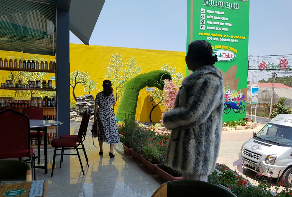 < 모피 코트를 입은 여자가 얇은 원피스를 입은 여자를 보고 있는 곳, 이곳이 바로 달랏이다. 오른 쪽에 고급진 우리 차도 보인다. >
