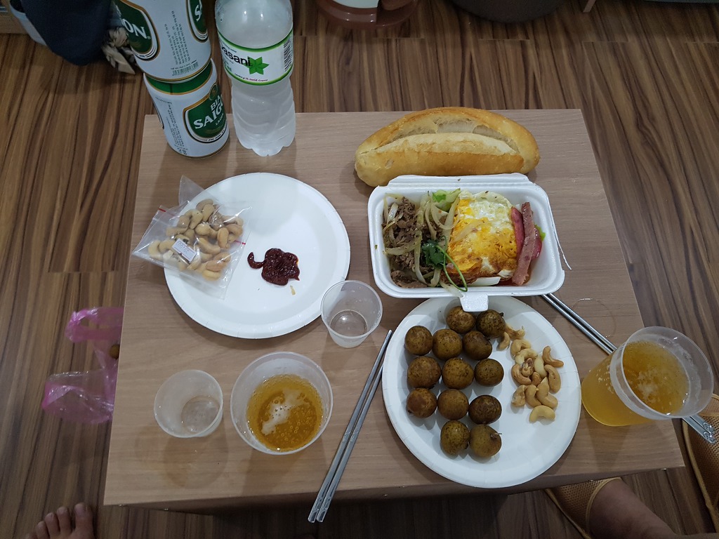 < 반미는 빵에 소고기 볶은 것과 계란 프라이 햄 등 여러 가지를 끼워 먹는 베트남식 샌드위치인데 우린 따로 달라고 해서 빵은 버리고 속재료를 안주로 먹었다. >