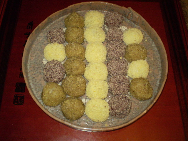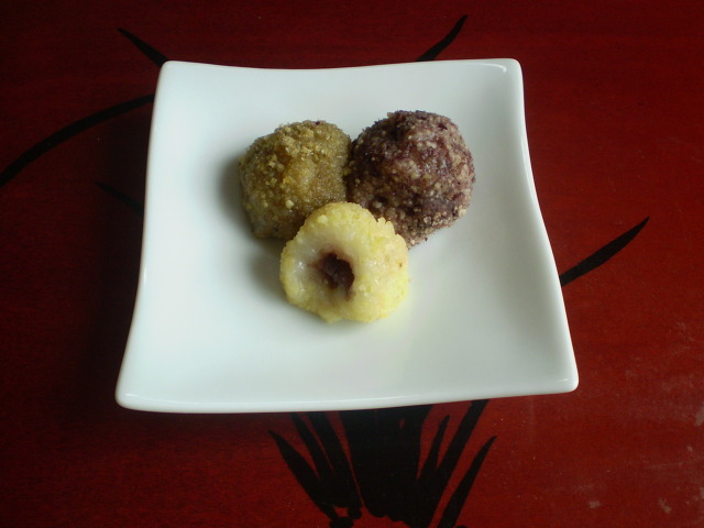 경단은 세가지 고물로 만들었어요. (고물은 붉은 팥, 녹두, 그린녹두)