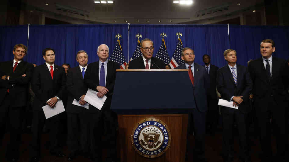 <상원 이민개혁 주역 초당파 8인방의 기자회견>