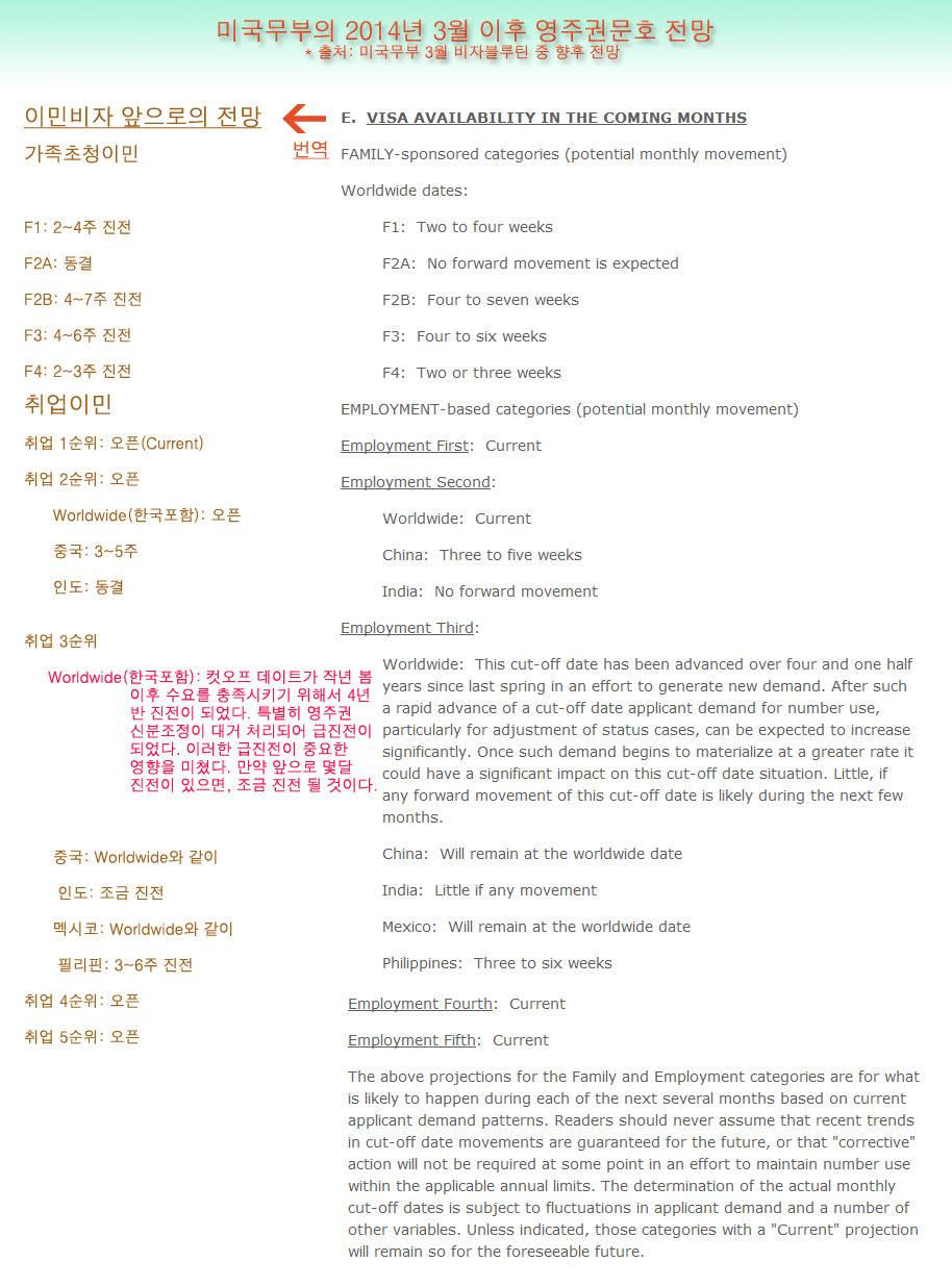 03월 영주권문호 분석 및 전망 취업3순위 → 수속기간 1년4개월 취업3순위 2~3개월 진전 전망 가족F2A 동결, 나머지 2~7주 진전 전망