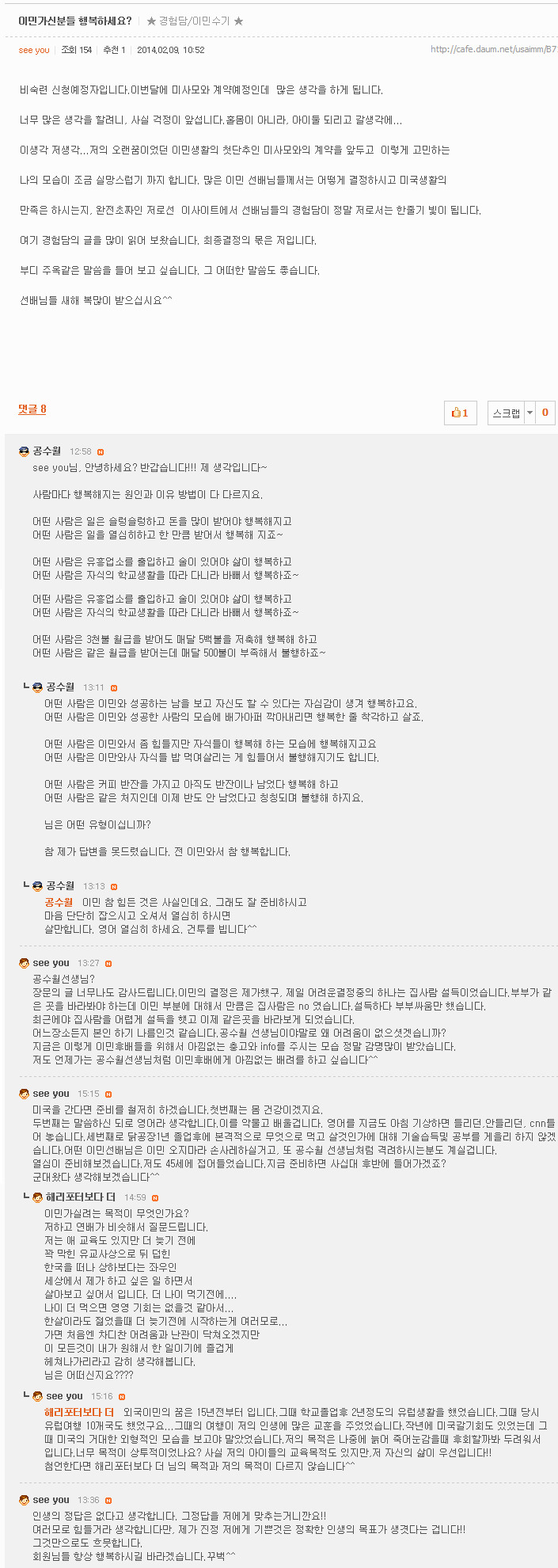 이민가신 분들 행복하세요? 글쓴이: see you님