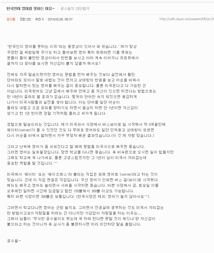 한국인이 영어를 못하는 이유~ 글쓴이: 공수월 님