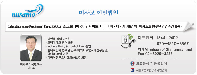 미사모 고객의 케이스들은 AAA급 미사모 직속 김기육 미국변호사가 세밀하게 영주권 신청 부터 획득 까지 세밀하게 관리해 드립니다. 더욱 안전하고 빠르게 영주권을 획득하실 수 있습니다.