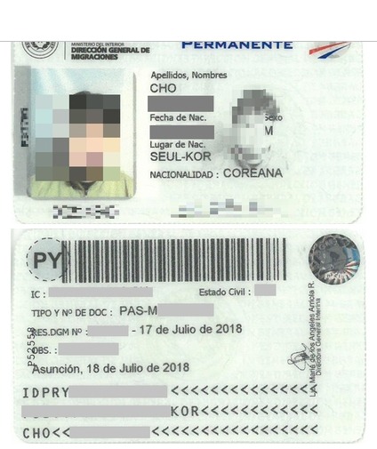 <2018년 7월 31일 취득한 조**님의 파라과이 영주권>
