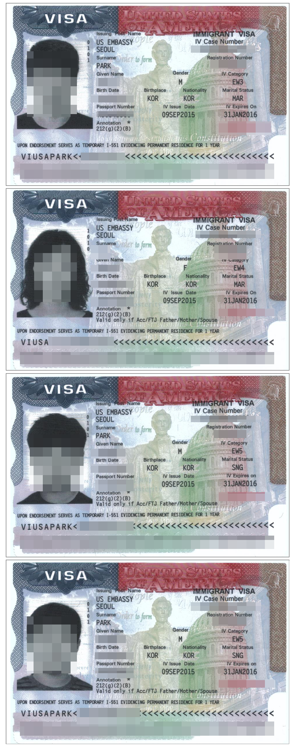 주한 미대사관 이민비자 인터뷰에서 거절 된 후 2주가 지나서 2015년 9월 1일 미대사관으로 부터 박**님 전가족 취업이민 비숙련직 이민비자를 발급 해 주겠다는 소식이 도착하였고 2015년 9월 9일 전 가족 모두 이민비자가 발급되었습니다.